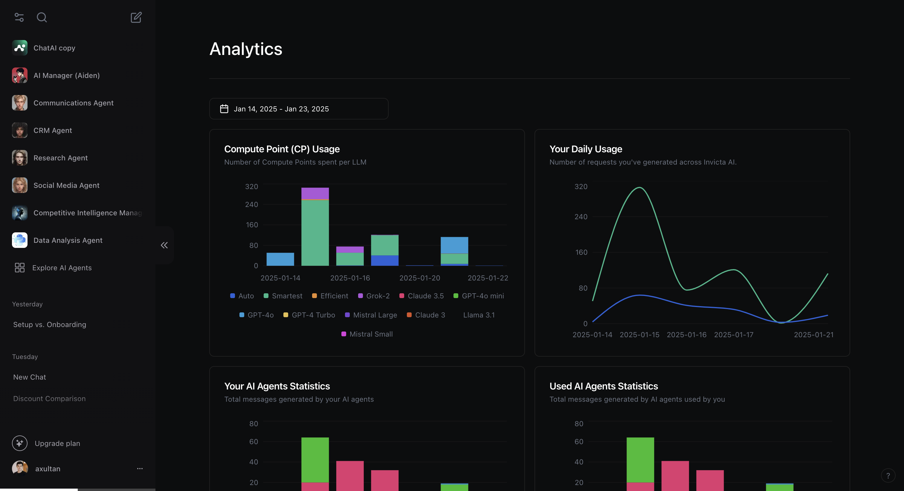 - Larger models like GPT-4o and Claude-3.5 use more credits than simpler models like Llama 3 or Mistral Large.